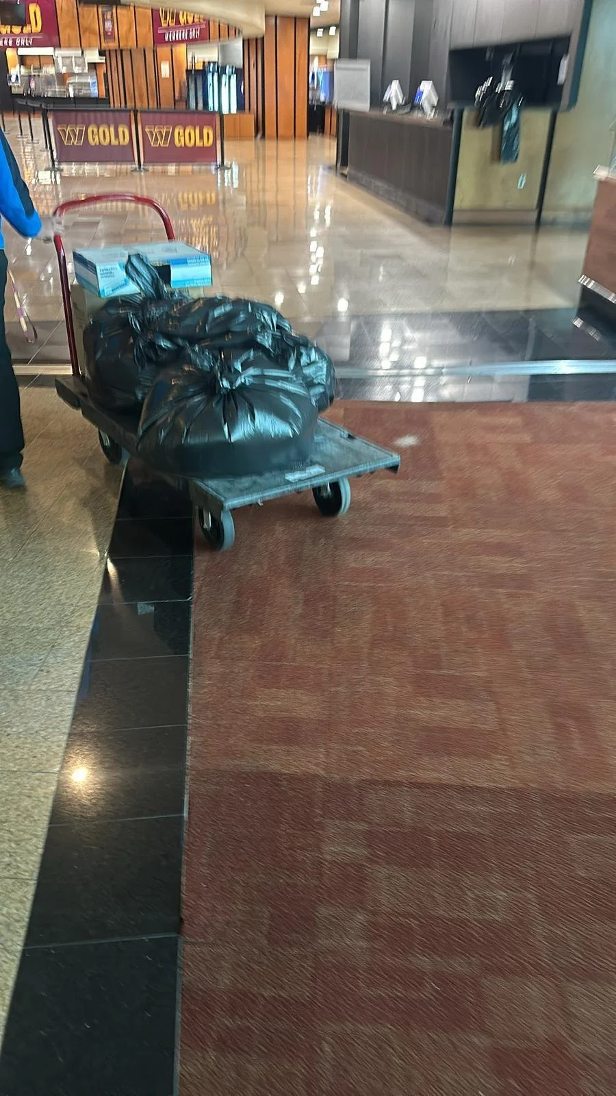 “This one as well is there, if cleaning. There they take out all of the garbage from the entire section, all of the garbage, the cleaning bags, while you go around cleaning, gathering all the garbage in those carts to take away because there are six floors.”