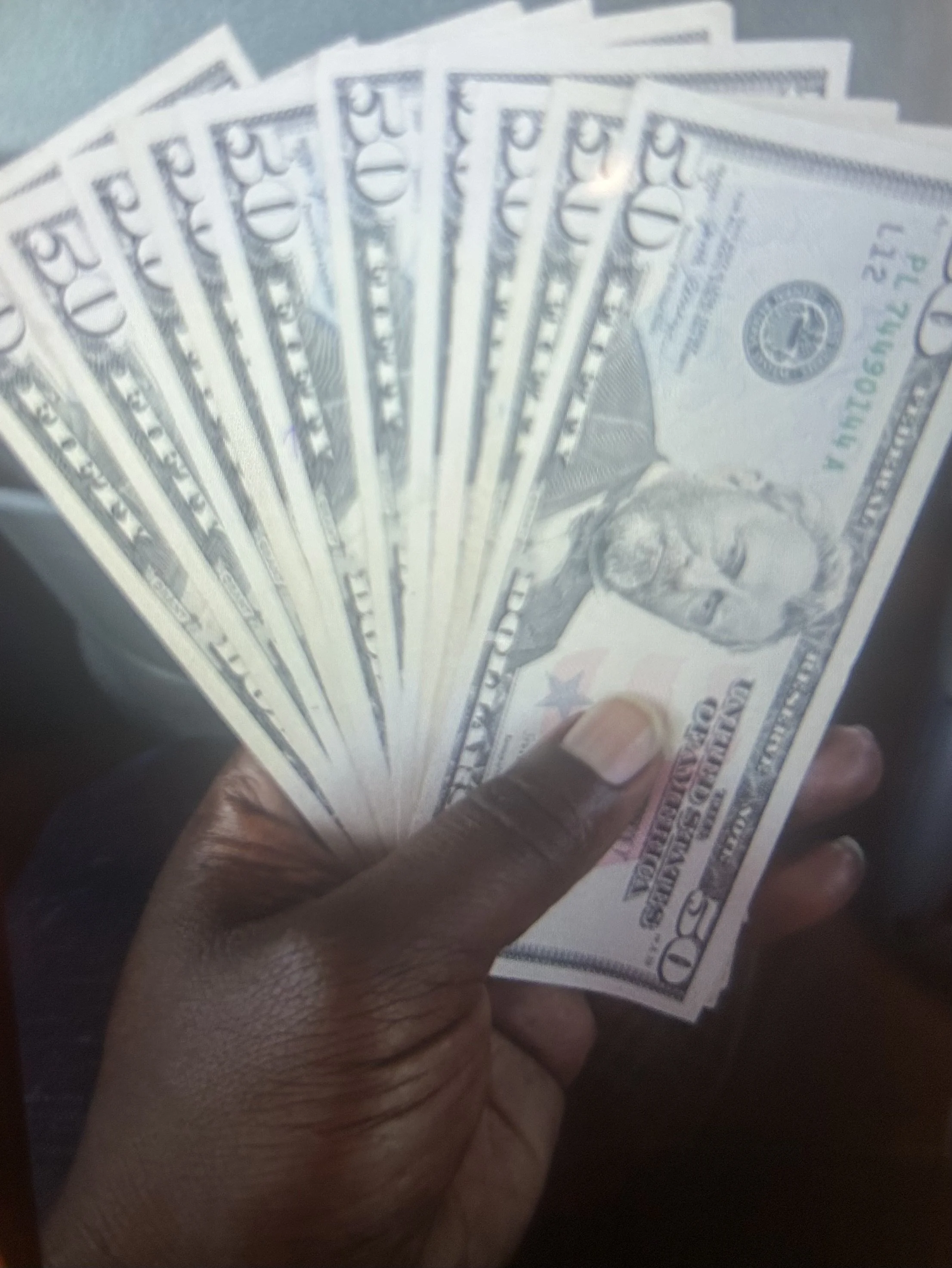 “Este fue mi primer sueldo, aquí en los Estados Unidos, trabajaba en una pastelería, pues, hice 40 horas y eso fue mi pago, primeros dólares que pasaron por mis manos en este país.”